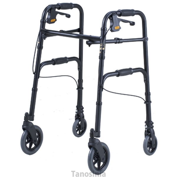 ・ハンドルブレーキ・大型キャスター付き歩行器。屋外の使用にもおすすめです。