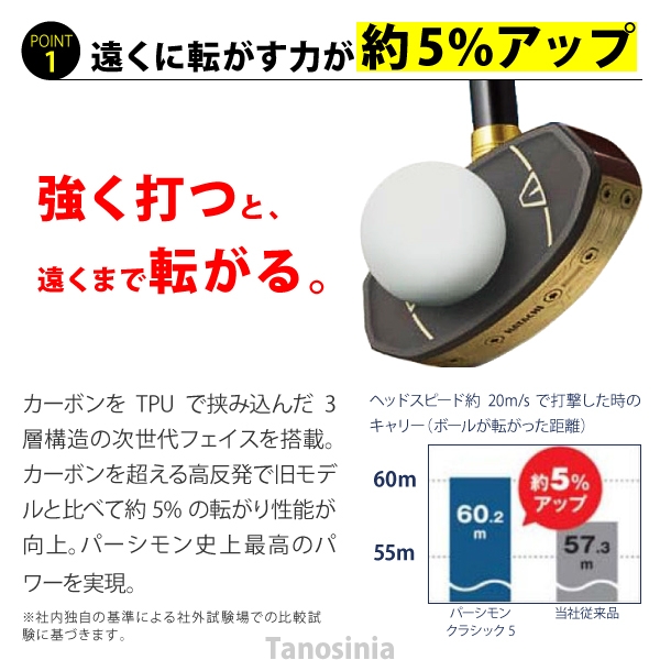 遠くに転がす力が約5%アップ。
