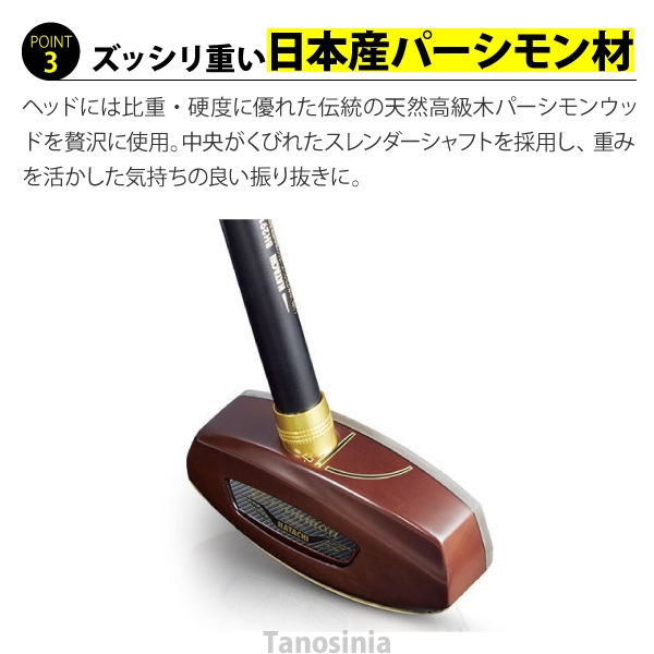 ゴルフクラブで実証された高級天然木「パーシモン」をヘッドに採用しています。