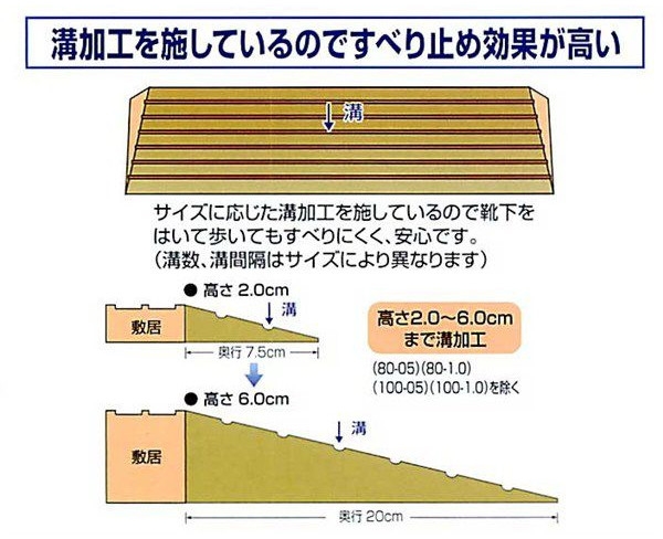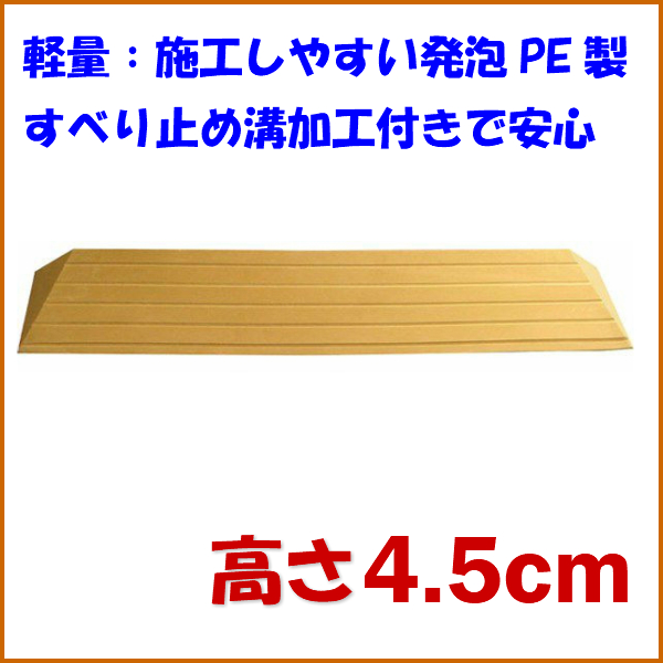 ○軽量で施工しやすい発泡PE製 すべりにくい溝付き段差解消スロープ