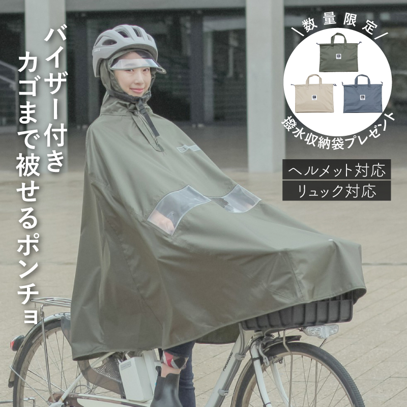 ●視界良好。顔も足元も濡らさない、リュック&ヘルメットと併用可。特約店限定ハイスペックレインポンチョ