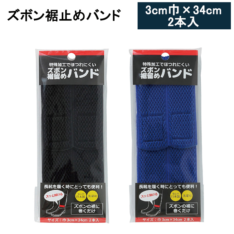 ●ズボンの裾に巻くだけで、長靴を履くのに便利な裾留めバンド。●洗濯できて、特殊加工でほつれにくい。