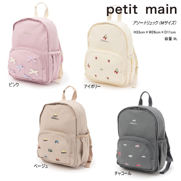 【セール/10%OFF】26'春新作 petit main プティマイン アソートリュック Mサイズ 9561426 9L 男の子 女の子 ベビー キッズ 子供服