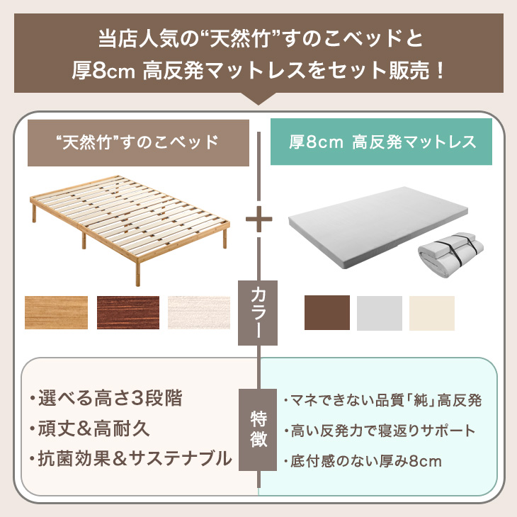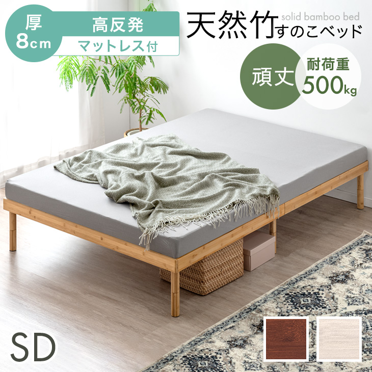 17日〜超お得 セミダブルベッド マットレス付 厚8cm 高反発マットレス 天然竹 ベッド 3段階 高さ調整 頑丈 セミダブル すのこベッド 竹 ベット マットレスセット