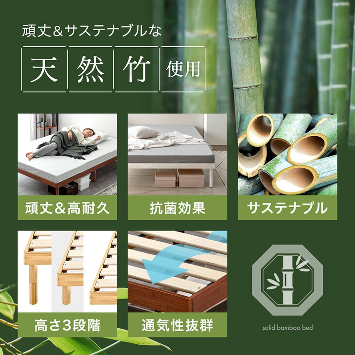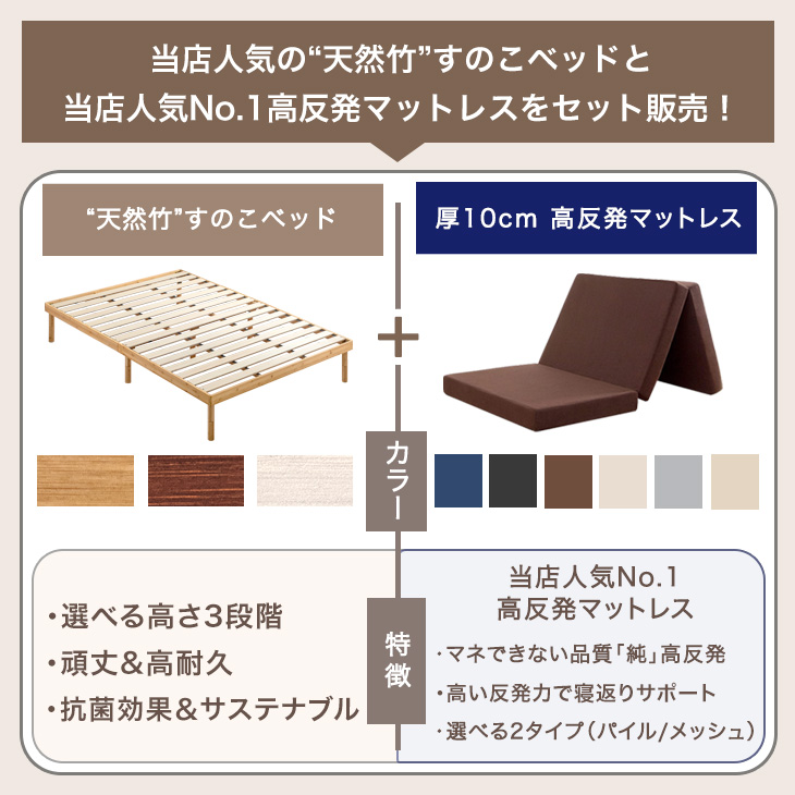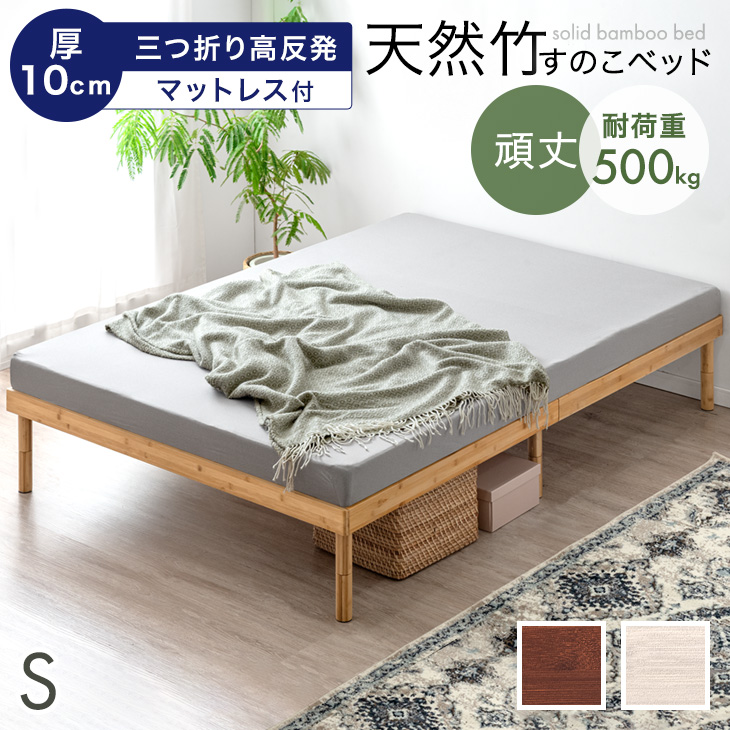 17日〜超お得 シングルベッド マットレス付 厚10cm 高反発マットレス 天然竹 ベッド 3段階 高さ調整 頑丈 シングル すのこベッド 竹 ベット マットレスセット