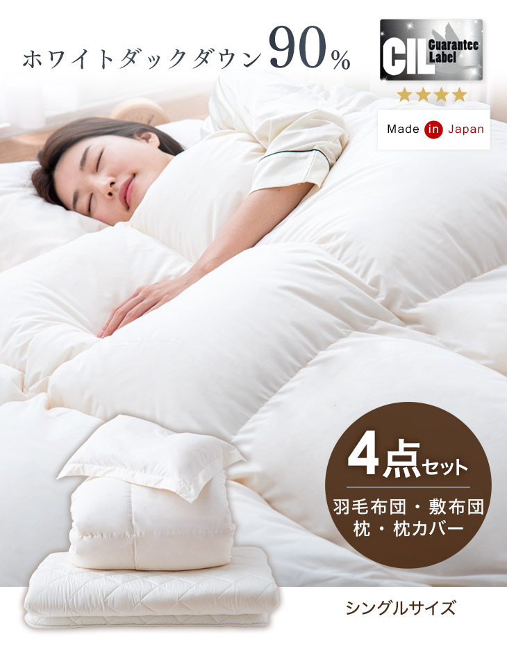 17日〜超お得 布団セット シングル 羽毛布団 4点セット 掛け布団 敷き布団 組布団 掛布団