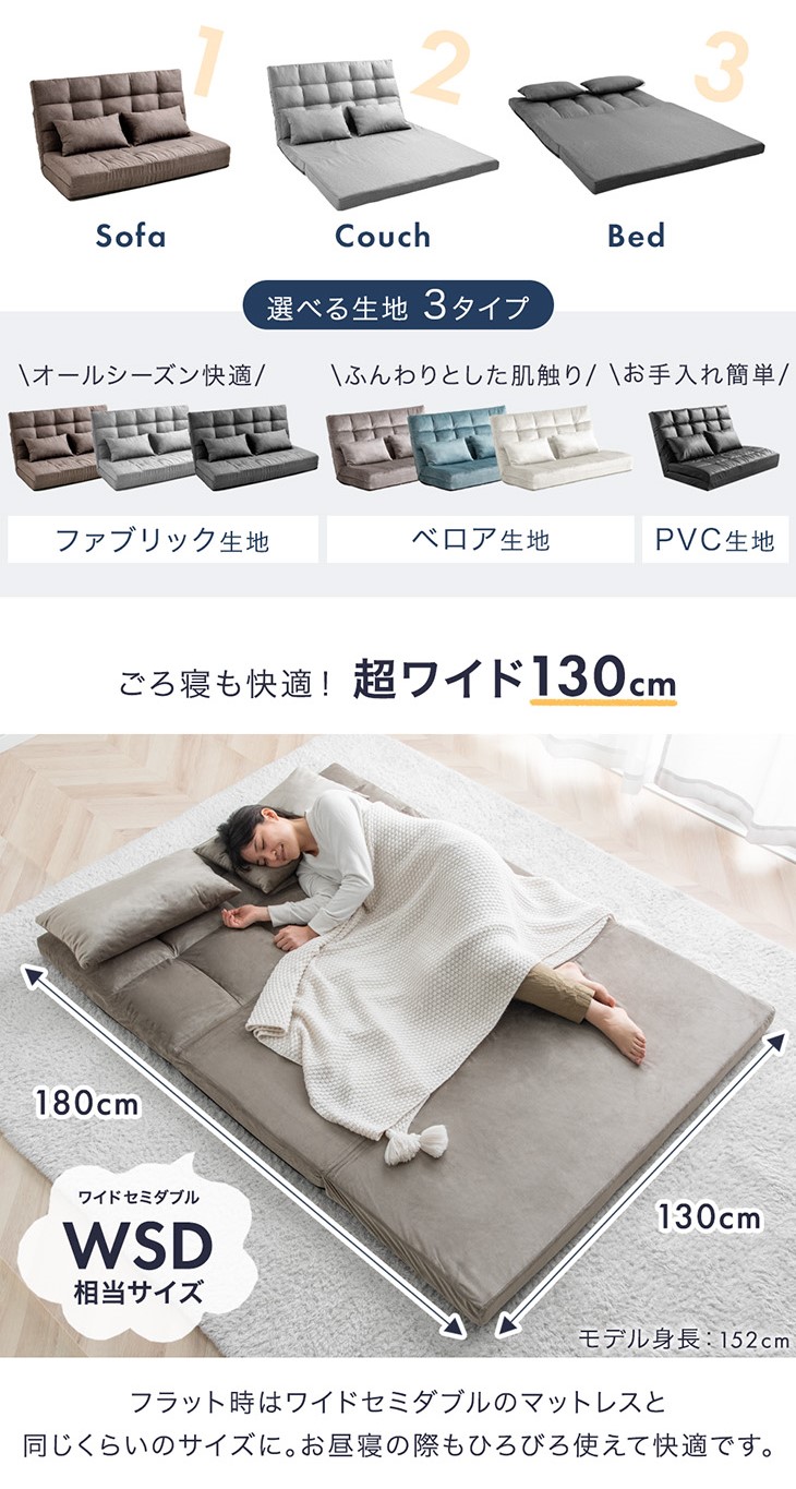 ソファ時:幅130×奥行60×高さ68cm