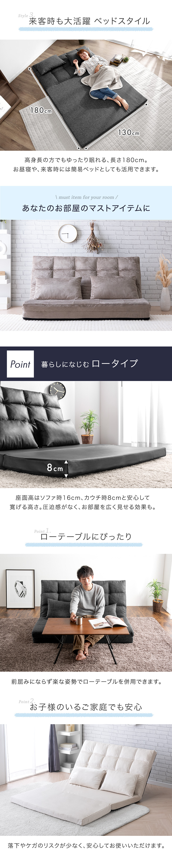 ベッド時:幅130×奥行180×厚さ8cm
