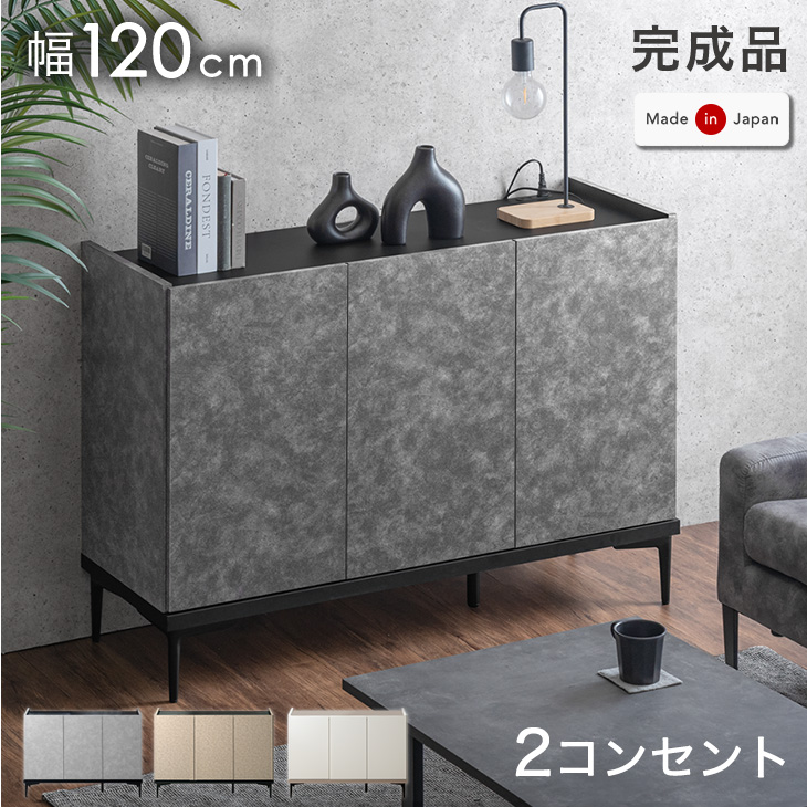 サイドボード 日本製 幅120cm 収納棚 おしゃれ キャビネット モルタル調 北欧 チェスト 大川家具 リビング