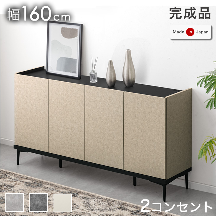 サイドボード 日本製 幅160cm 収納棚 おしゃれ キャビネット モルタル調 北欧 チェスト 大川家具 リビング