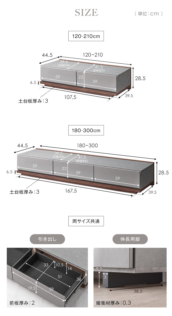 外寸】幅:約180〜300×奥行:約44.5×高さ:約28.5cm