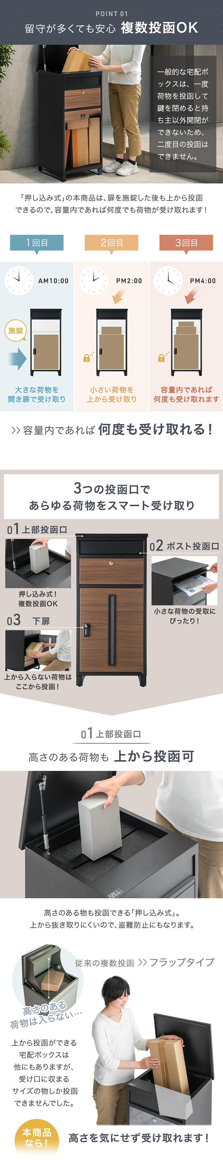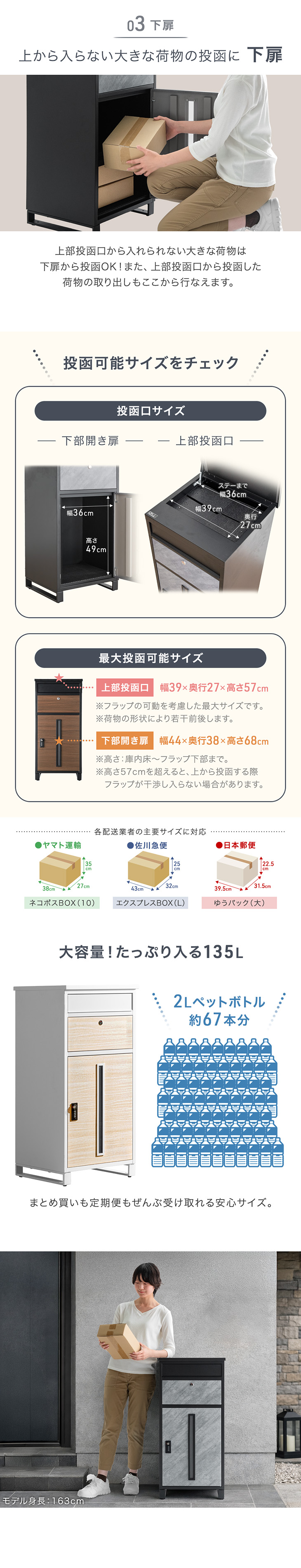 20日+5% 宅配ボックス 戸建 ポスト 大型 防水 屋外 135L 置き配ボックス ポスト一体型 大容量 複数投函 ダイヤル 宅配box 置き型 北欧 おしゃれ 鍵付き スリム