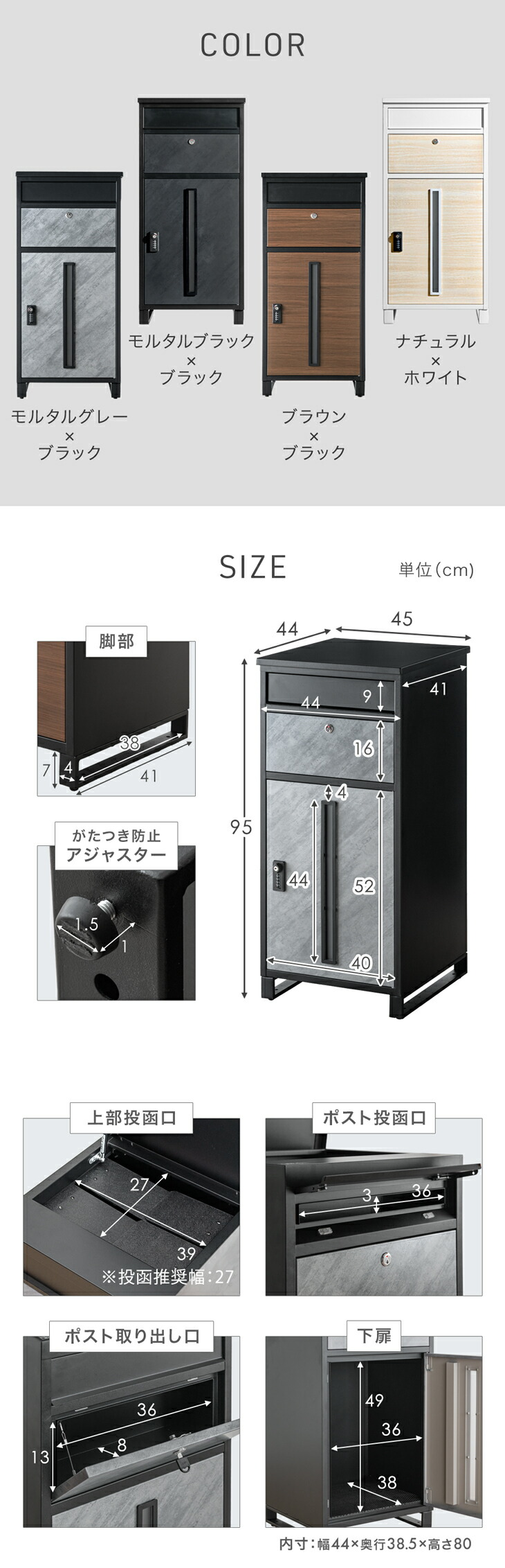 外寸:幅45×奥行44×高さ95cm