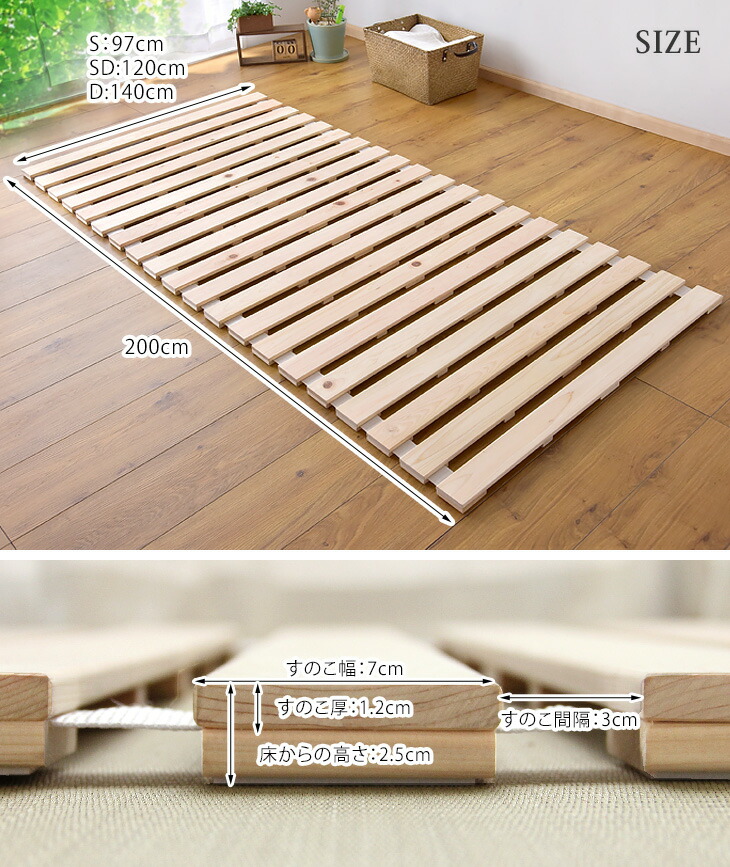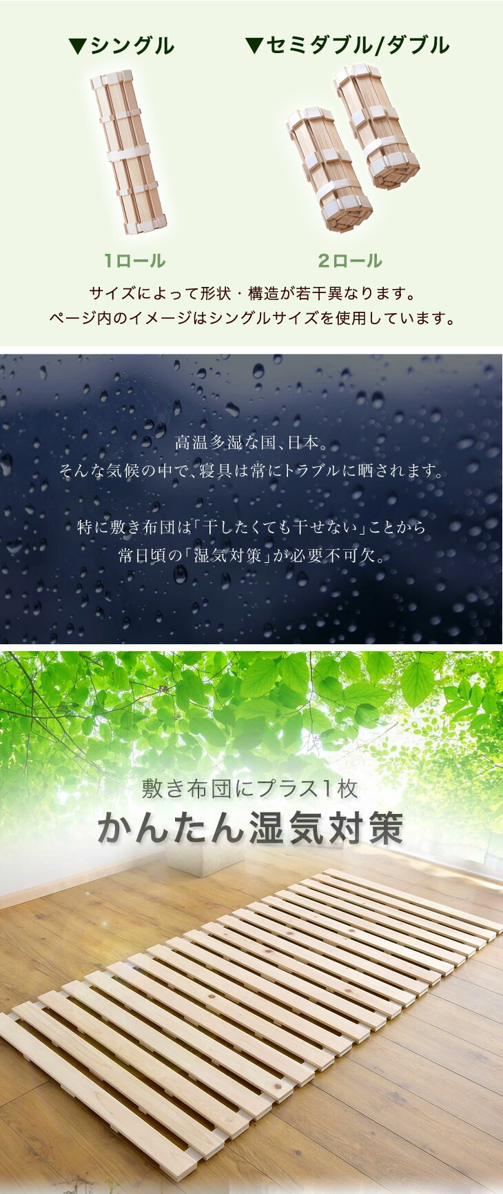 17日+5% すのこベッド シングル すのこマット ロール式 折りたたみ 木製 すのこマットレス 檜 おしゃれ