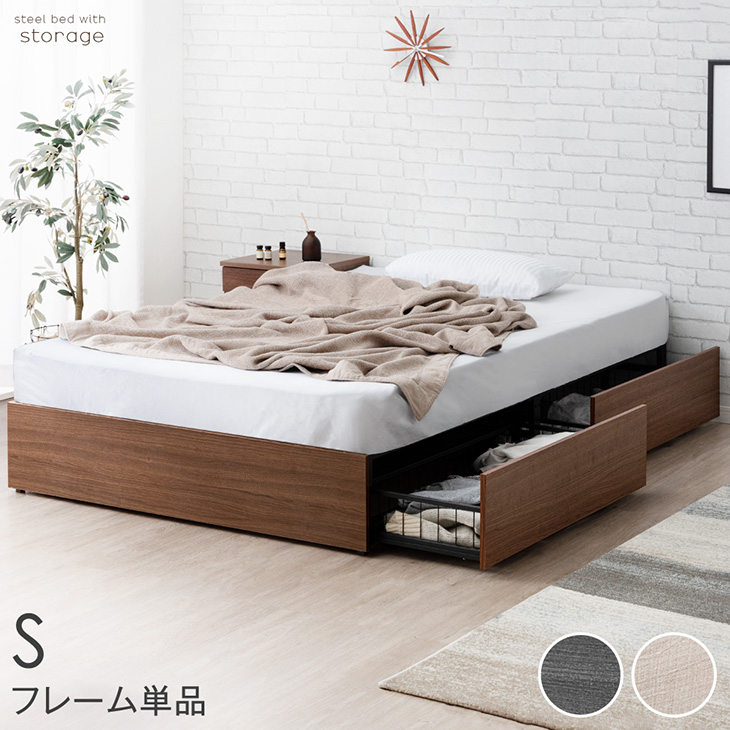 ベッド シングル 収納 ベッドフレーム おしゃれ 引き出し 大容量 シングルベッド 木製 スチール ベット 北欧 ローベッド 木 コンパクト