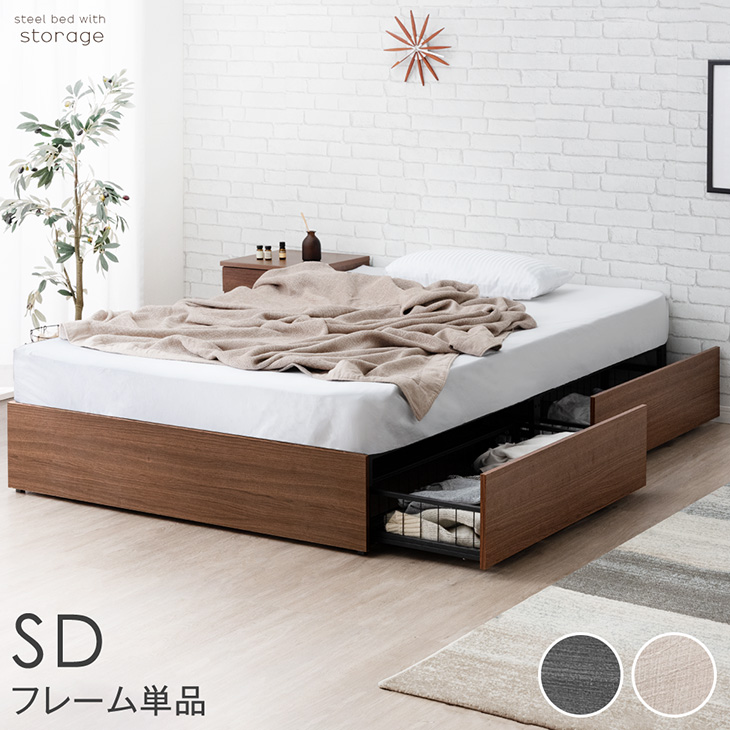 ベッド セミダブル 収納 おしゃれ 引き出し ベッドフレーム シングルベッド 木製 スチール ベット