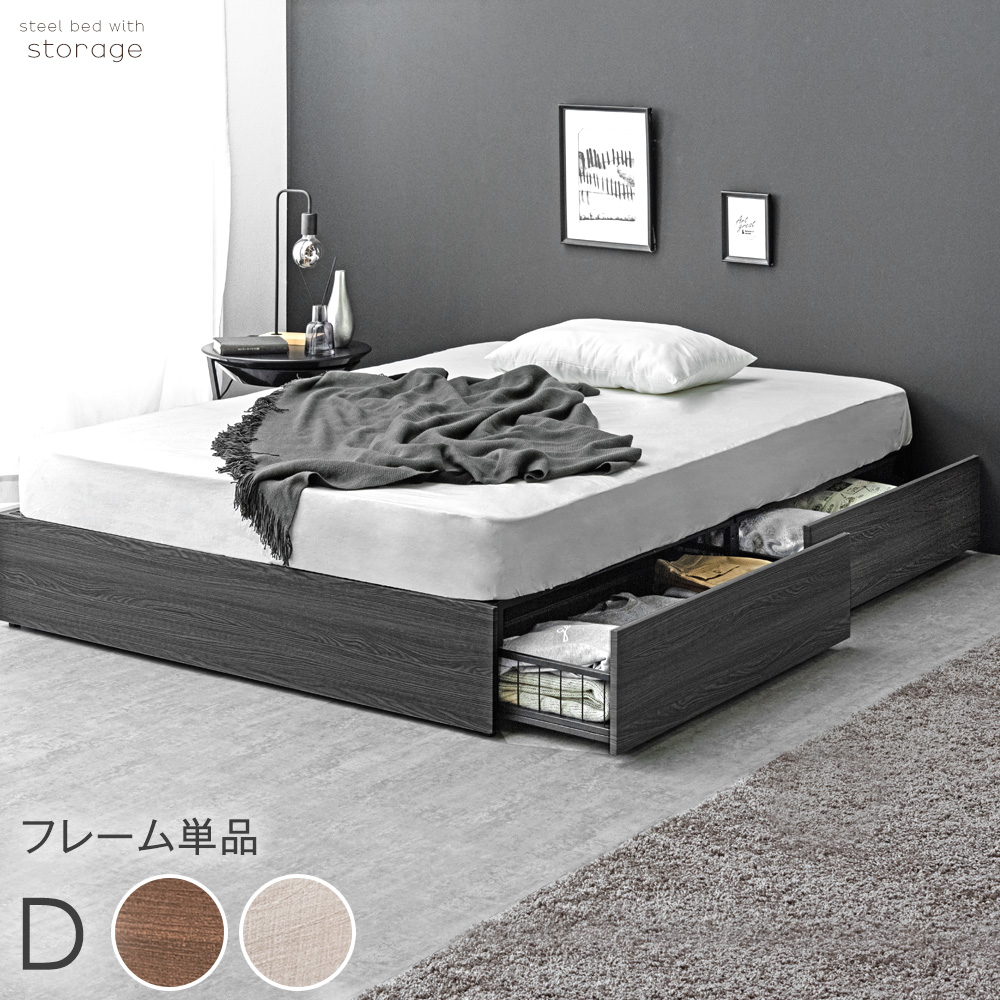 ベッド ダブル 収納 ベッドフレーム おしゃれ 引き出し 大容量 ダブルベッド ダブルベッド 木製 スチール ベット 北欧 ローベッド 木