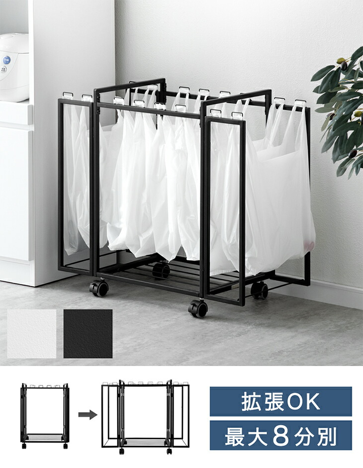 ゴミ箱 おしゃれ 分別 キッチン 分別 北欧 リビング ダストワゴン キャスター付き ホワイト ごみ箱ラック ゴミ袋ホルダー レジ袋