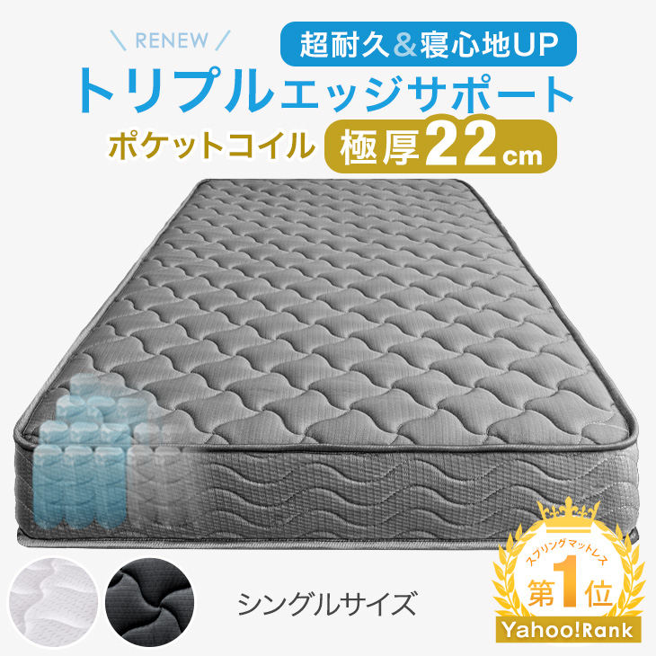 マットレス シングル 厚み22cm ポケットコイルマットレス エッジサポート 硬め コイルマットレス ベッドマットレス スプリングマット