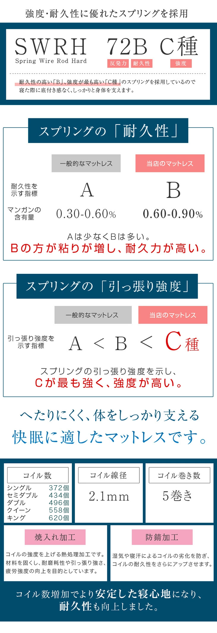 内部: ボンネルコイルスプリング (線径2.1mm)