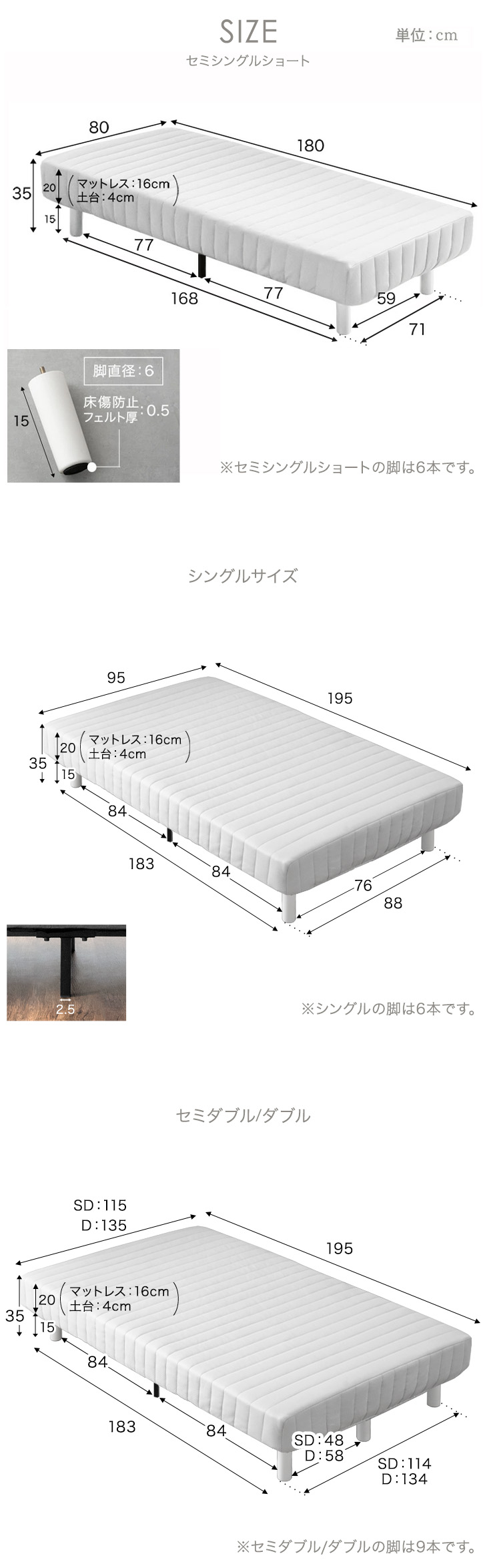 ベッド セミダブル 脚付きマットレス マットレス付き 脚付き 脚付ベッド ボンネルコイル 洗える カバー