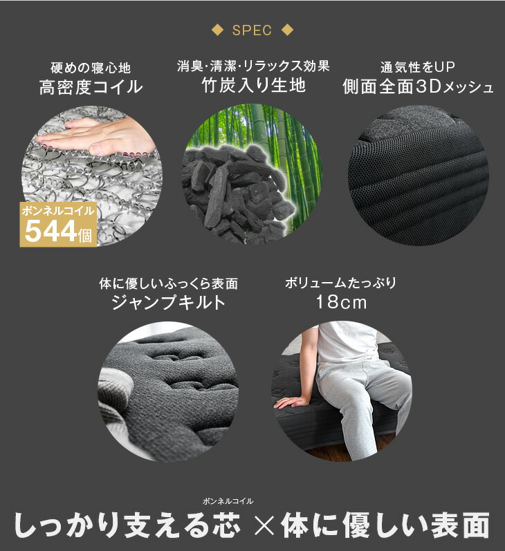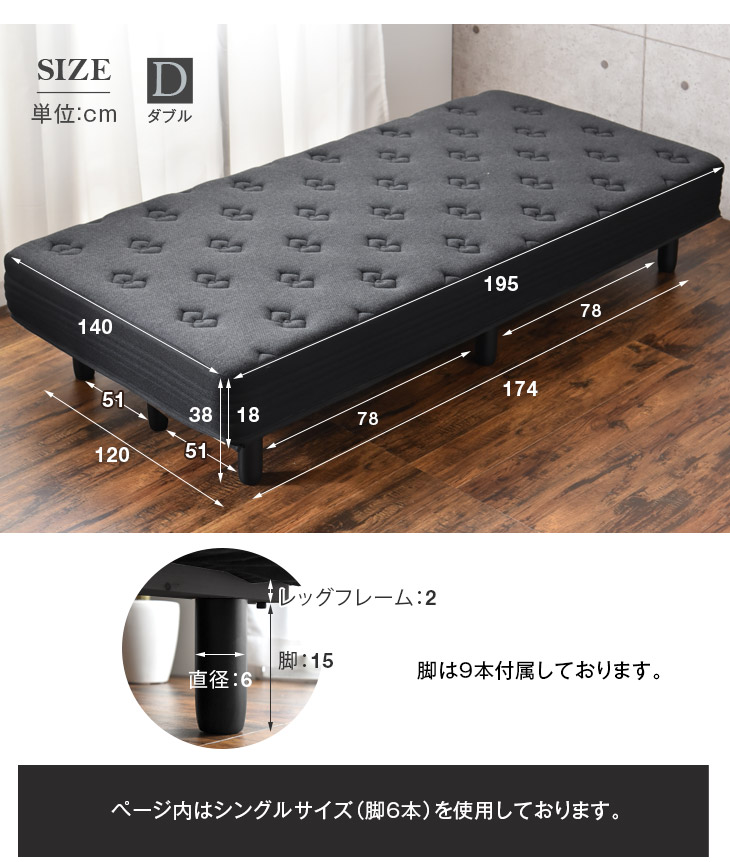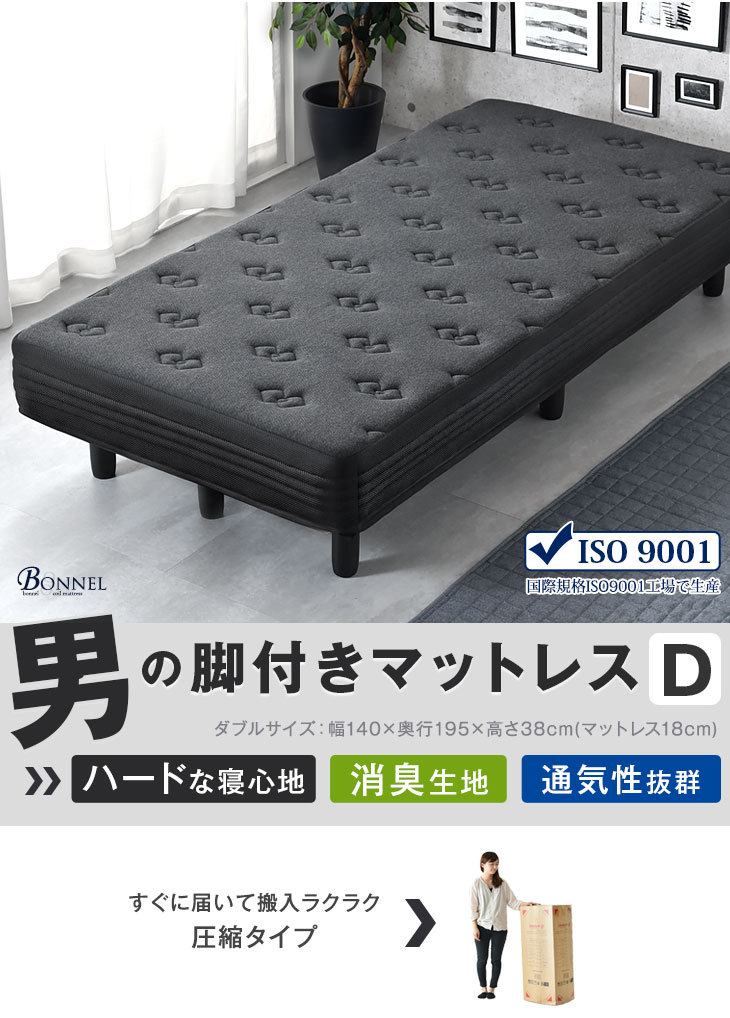 脚付マットレス ダブル ダブルベッド ベッド ベット 脚付ベッド 竹炭 高反発 ボンネルコイル 黒