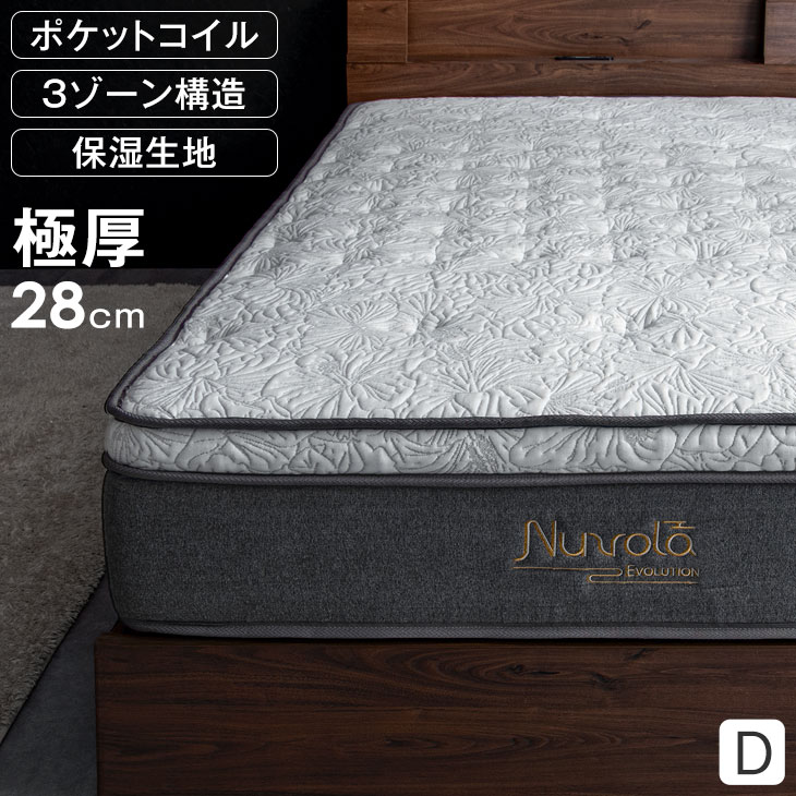 マットレス ダブル 極厚28cm ポケットコイルマットレス ベッドマットレス ベッドマット ピロートップ付 3ゾーン コイルマットレス