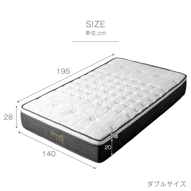 ※マットレスは柔らかい素材で作られてますので、復元直後や、測り方によって多少サイズに誤差が生じる場合がございます。予めご了承下さい。