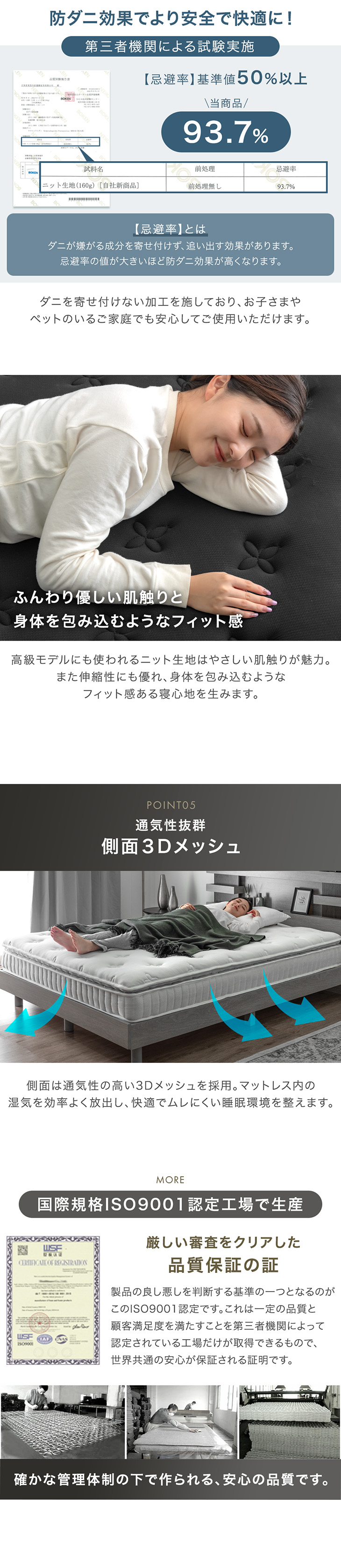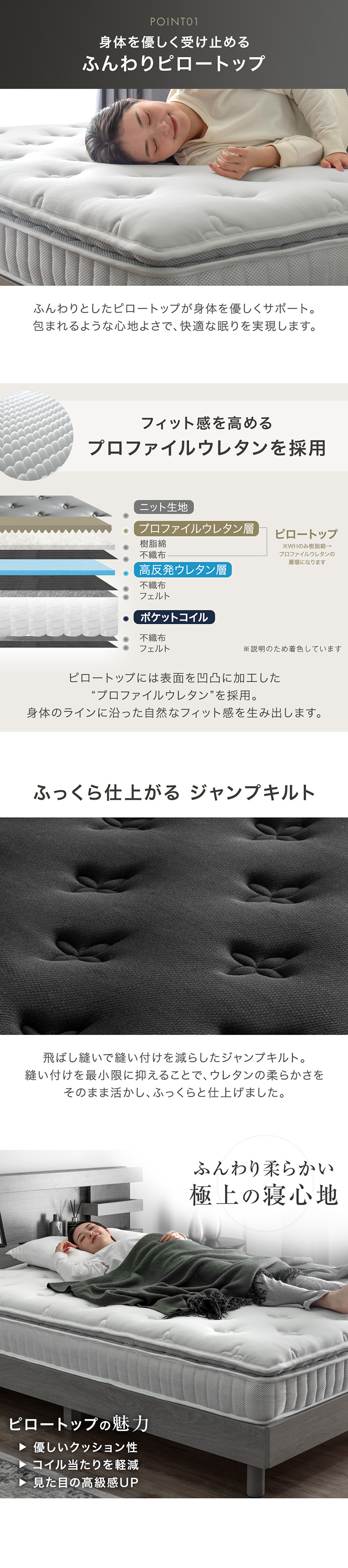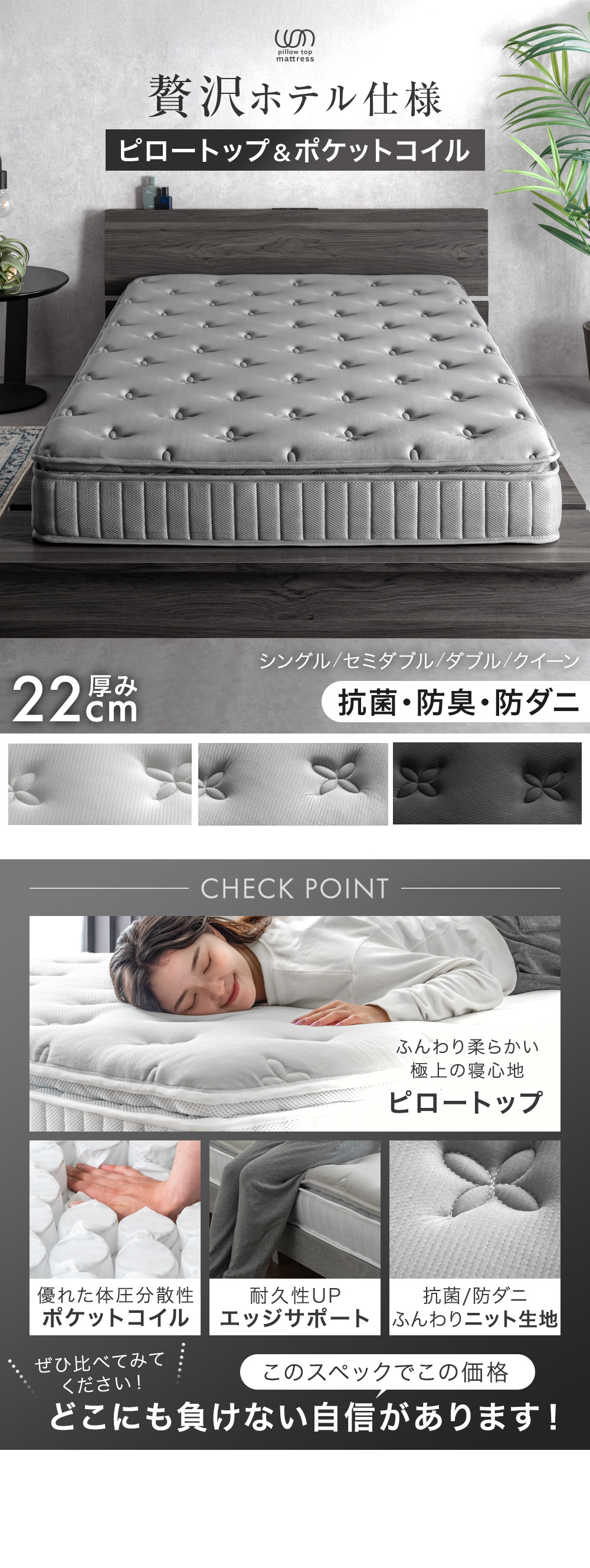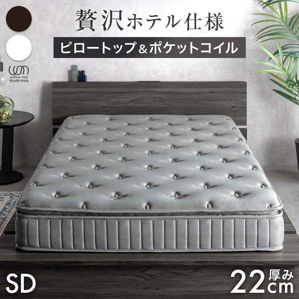 マットレス セミダブル ポケットコイルマットレス 厚み22cm ピロートップ 抗菌 防臭 防ダニ コイルマットレス ベッドマットレス ベッドマット