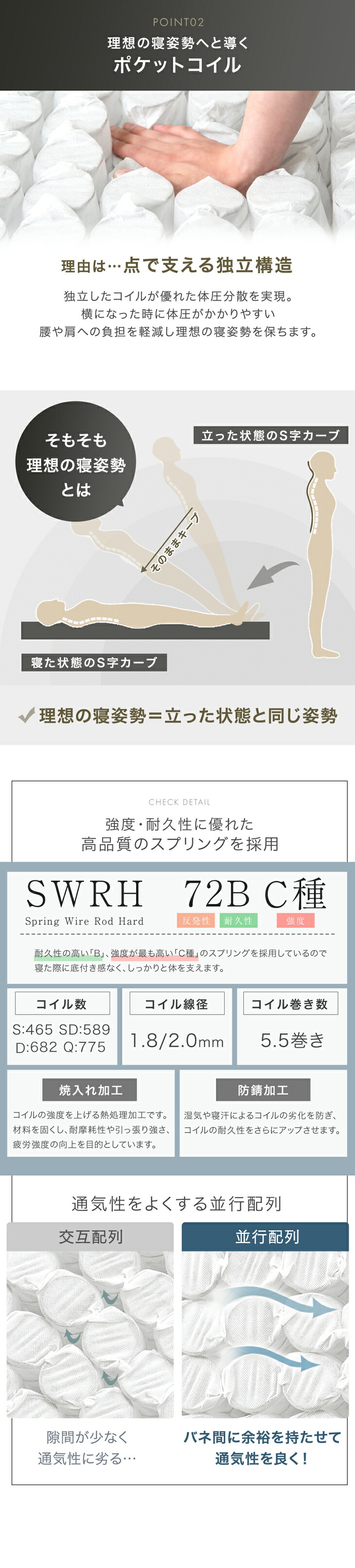 【内部】ポケットコイルスプリング、フェルト、不織布、20D高反発ウレタン