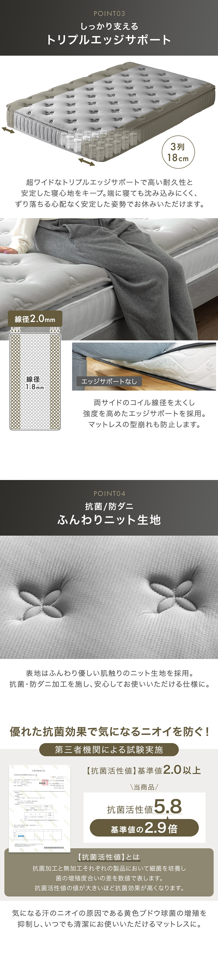 ※マットレスの上で飛び跳ねたりしますと、コイルの破損や怪我の原因になりますので、お避け下さい。