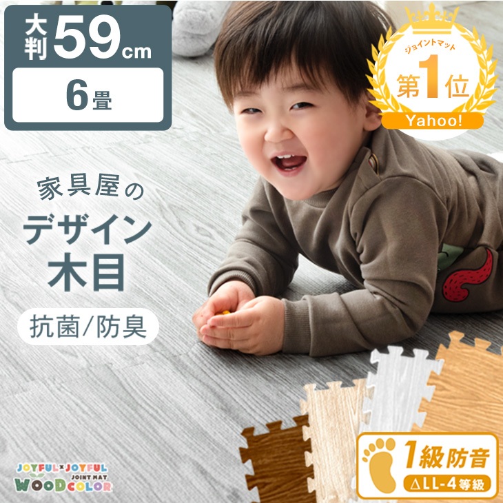13日+5% ジョイントマット 木目調 大判 6畳 32枚 おしゃれ フロアマット 59cm 一級防音 ベビー プレイマット 赤ちゃん カーペット 厚手 保育園 子供 単色 60c