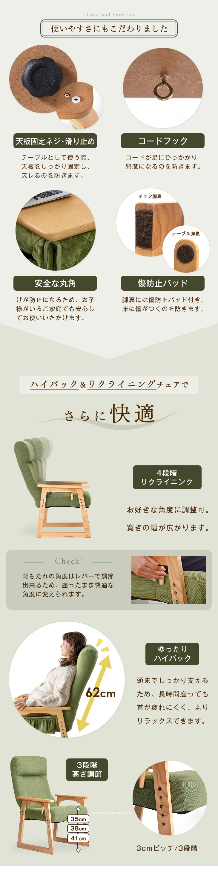 ※高さ3段階調節(3cmピッチ)