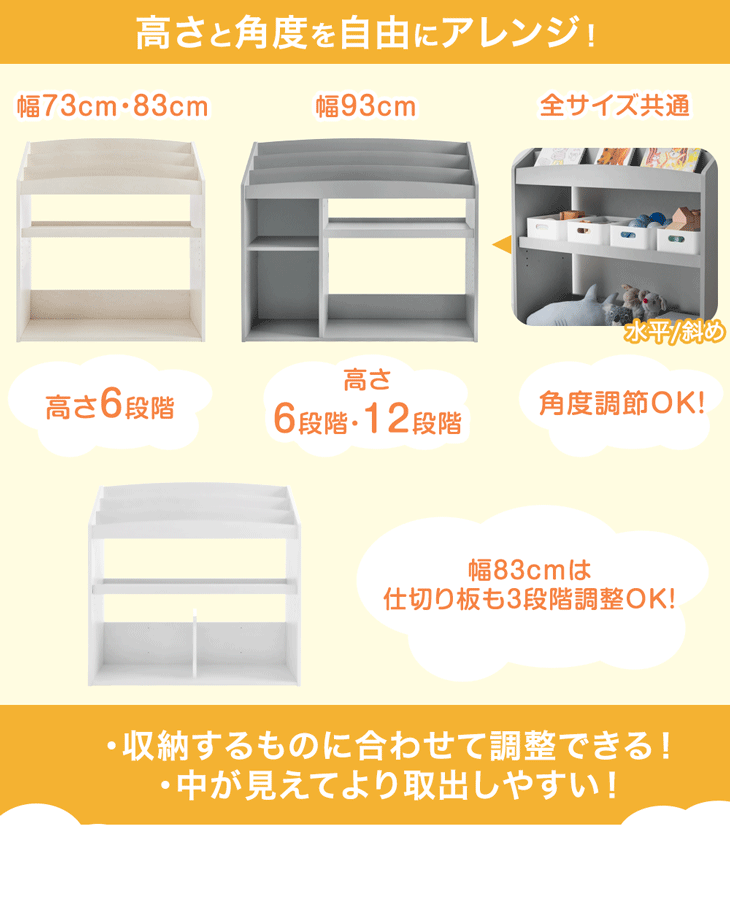 11日+5% 絵本ラック スリム 絵本棚 幅73 おしゃれ ロータイプ 本棚 子供 オシャレ 子ども ブックラック 木製 本棚 子供部屋 収納棚 おもちゃ 書棚 収納ラック