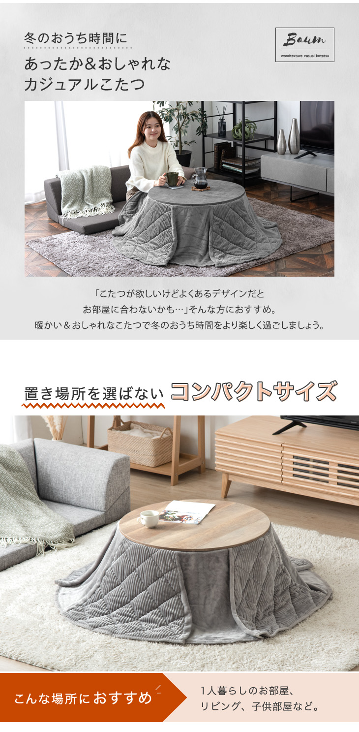 こたつ こたつセット 円形 一人用 おしゃれ こたつテーブル こたつ布団 セット 2点セット 幅69 丸 丸形 円卓 コタツ 炬燵 掛け布団 こたつ布団セット 北欧