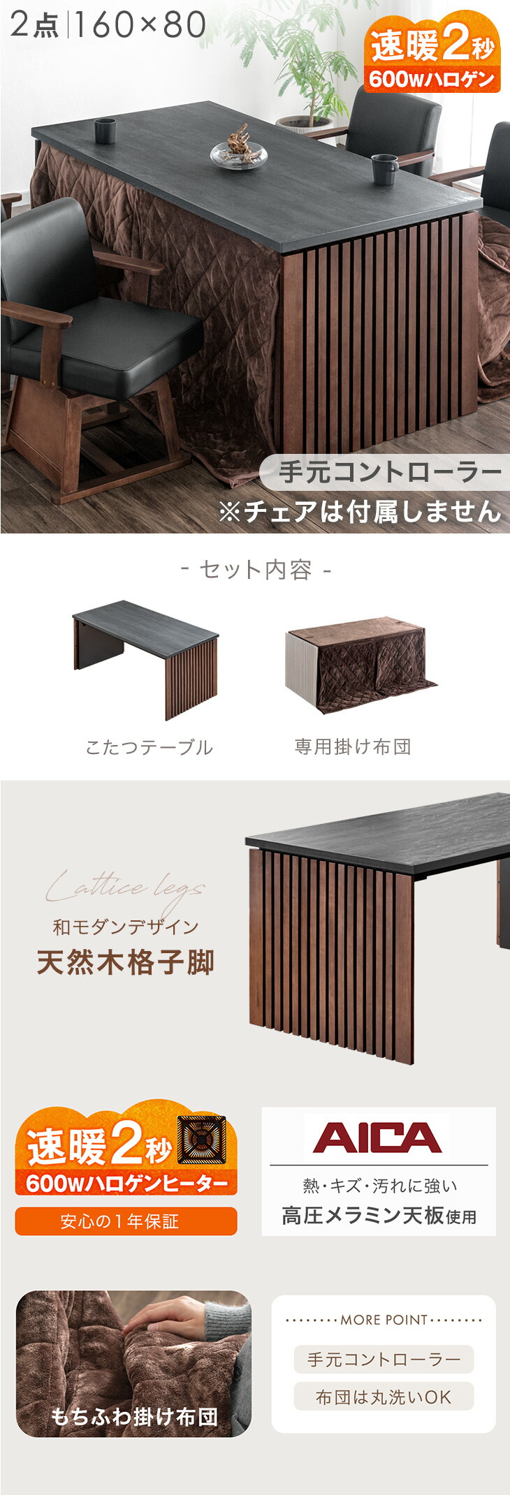 こたつセット 長方形 ダイニングこたつセット テーブル 160×80 格子脚 掛け布団 2点セット おしゃれ 北欧