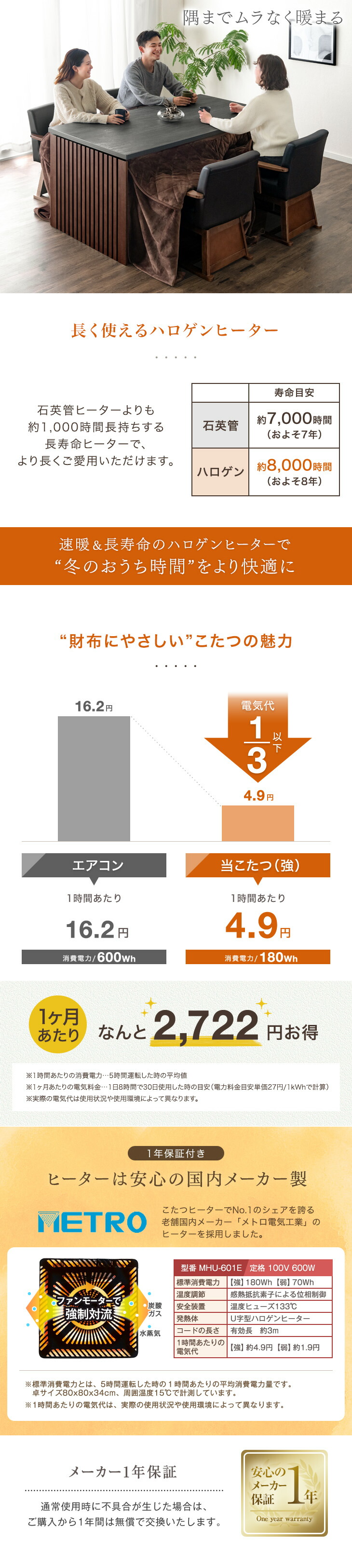 □1時間あたりの電気代:弱モード…約2.4円、強モード…約4.9円