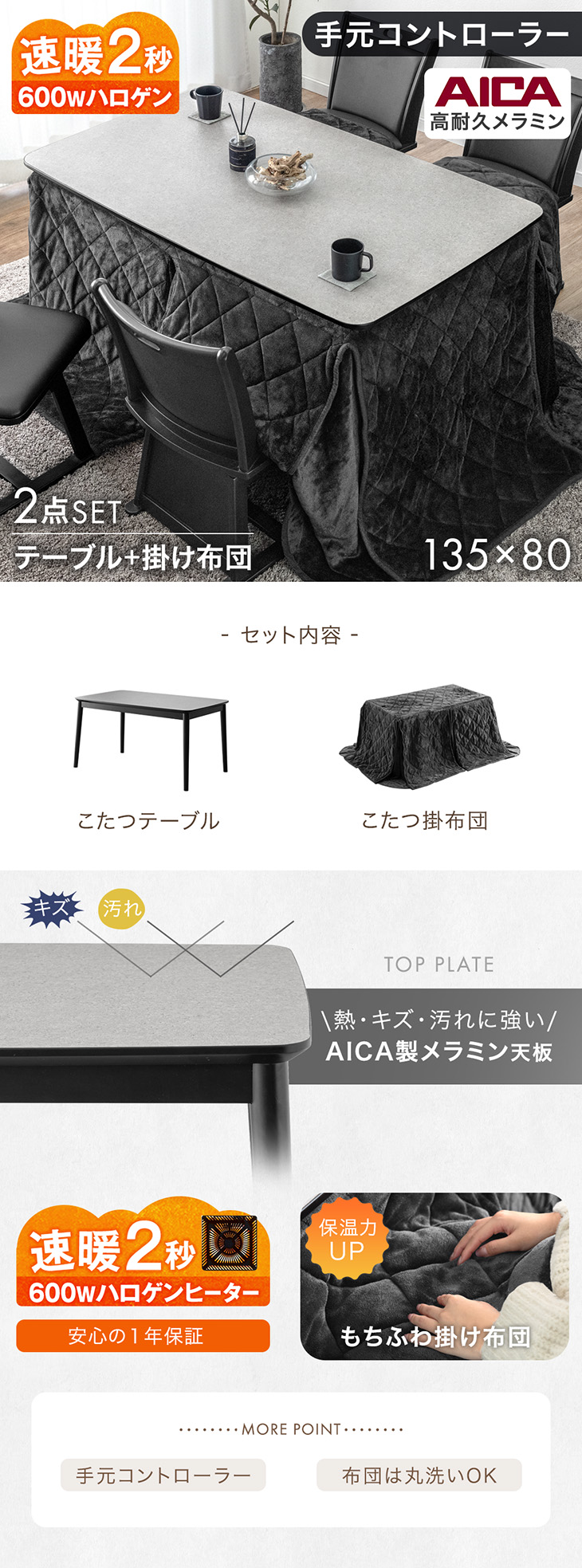 こたつ 長方形 こたつセット こたつテーブル 石目調 高耐久 135×80 ハイタイプ ダイニングこたつテーブル アイカ 掛布団 4人用 超大型