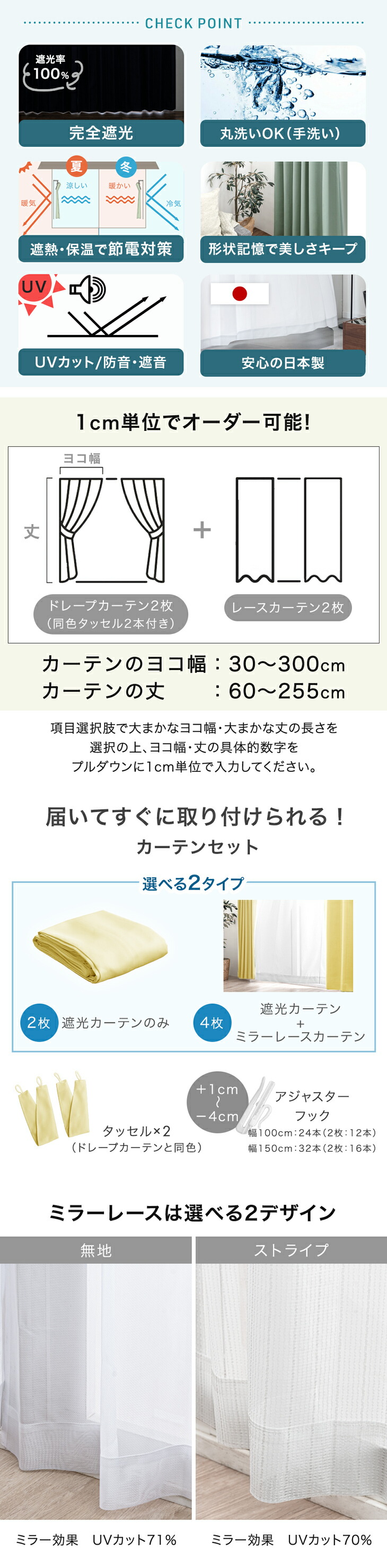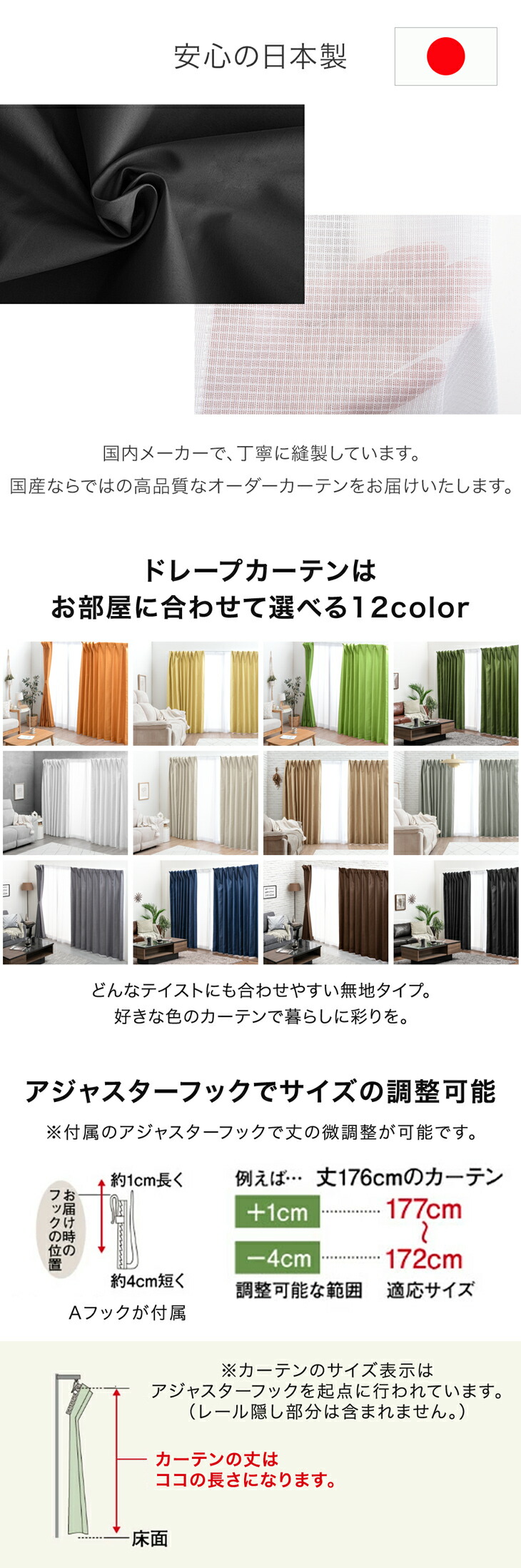 カーテン おしゃれ 1cm単位で調節可能 オーダーカーテン 2枚セット 日本製 遮光カーテン 1級 2級 断熱 オーダーメイド 北欧 シンプル