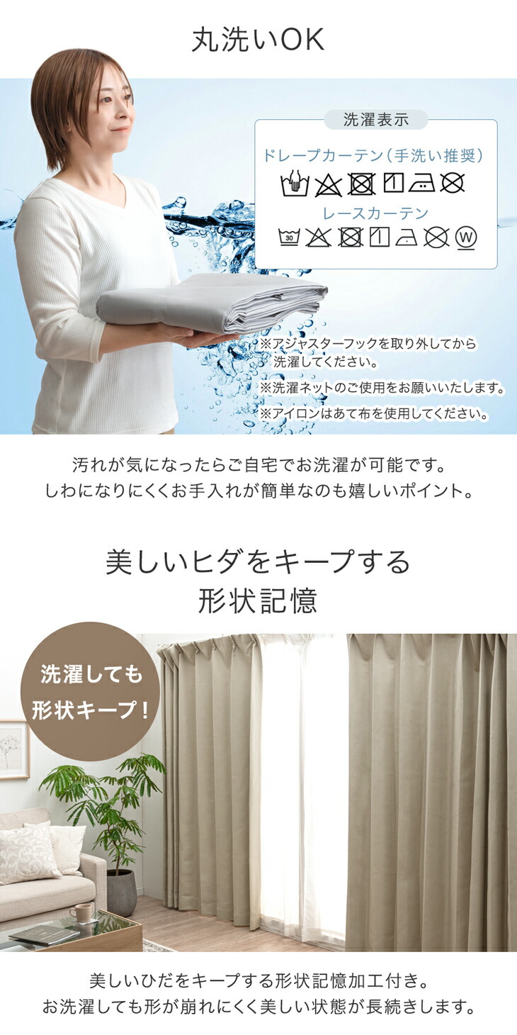※仕上がり幅はフックからフック間、仕上がり丈はフックからカーテン裾の長さです。総幅、総丈ではございません。
