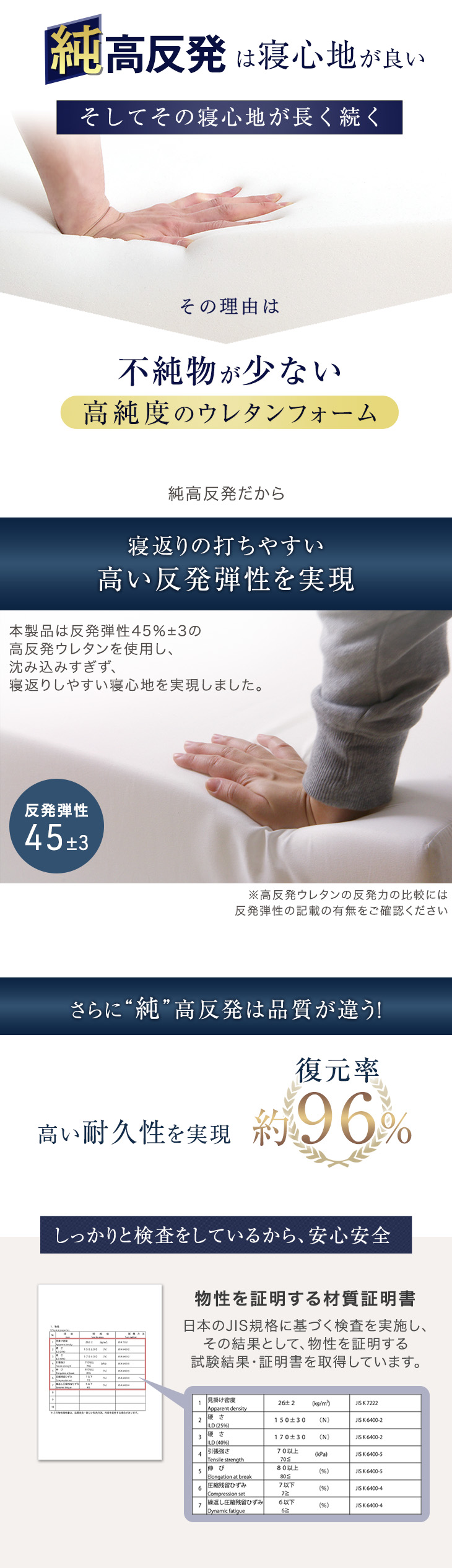 中材:ウレタンフォーム(硬さ150N・密度26D)