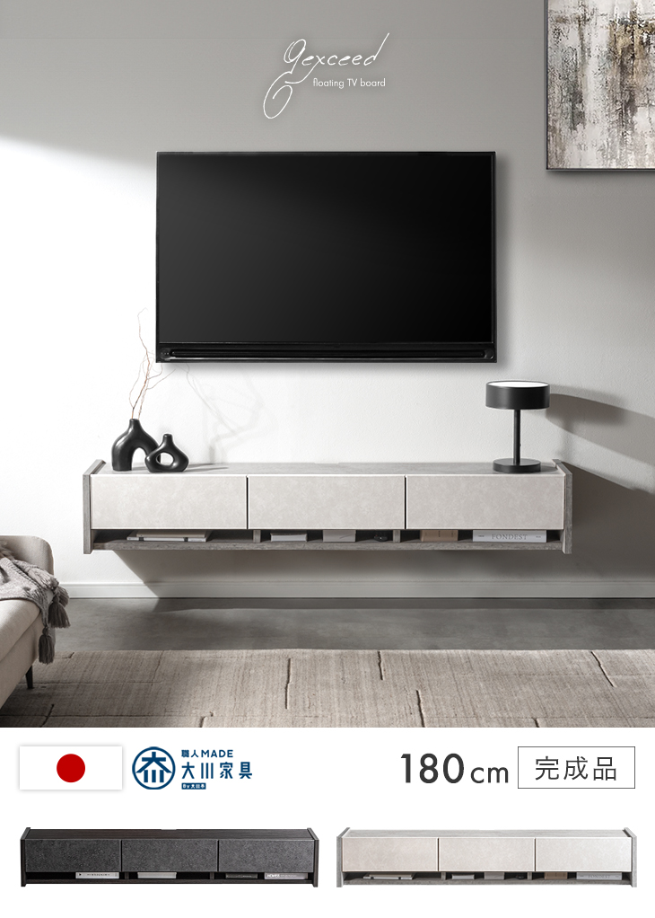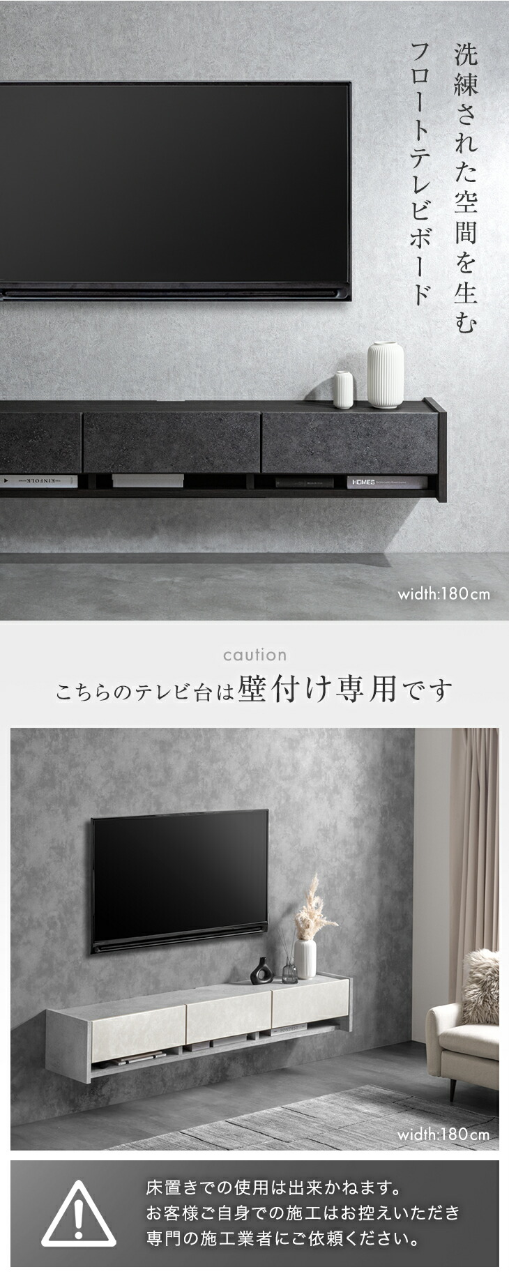 17日+5% テレビ台 幅180 フロート 完成品 壁掛け おしゃれ 国産 テレビボード 日本製 フロートタイプ TVボード 白 黒 テレビラック 収納 TV台 超大型