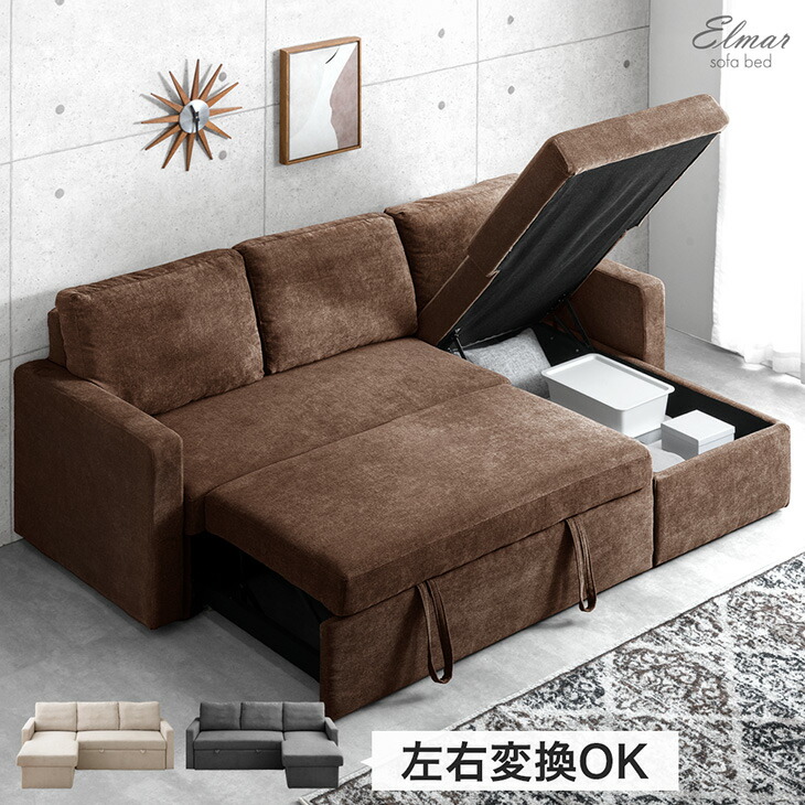 収納付き ソファベッド 三人掛け カウチソファ 跳ね上げ式 ファブリック L字 3人掛けソファー 収納ソファ ソファーベット ソファベット カウチ おしゃれ sofa bed