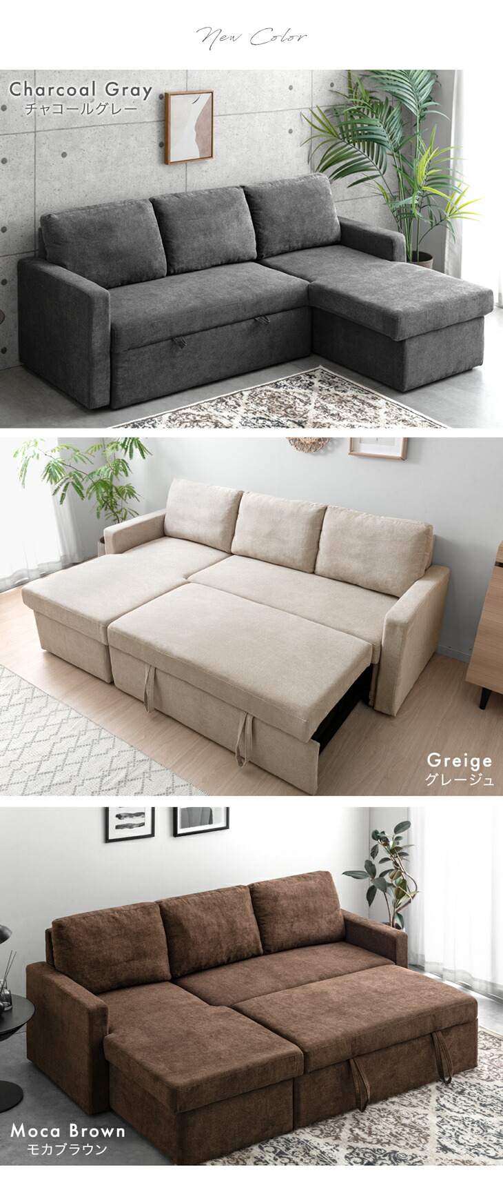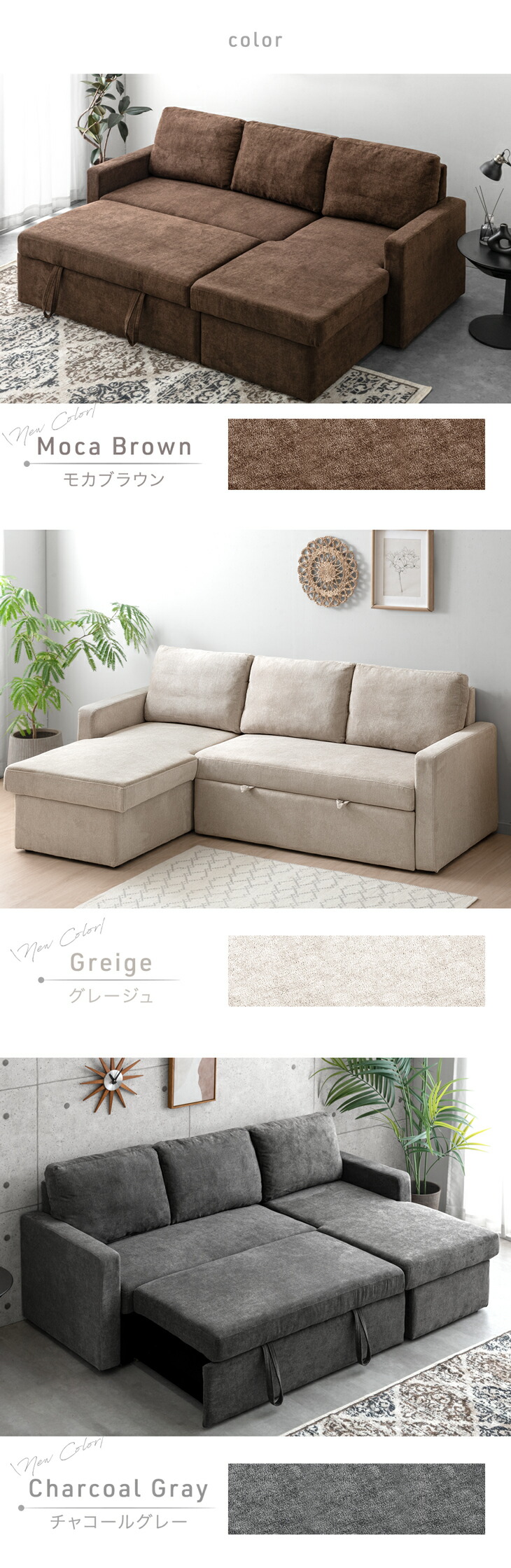 [カラー] グレージュ、モカブラウン、チャコールグレー