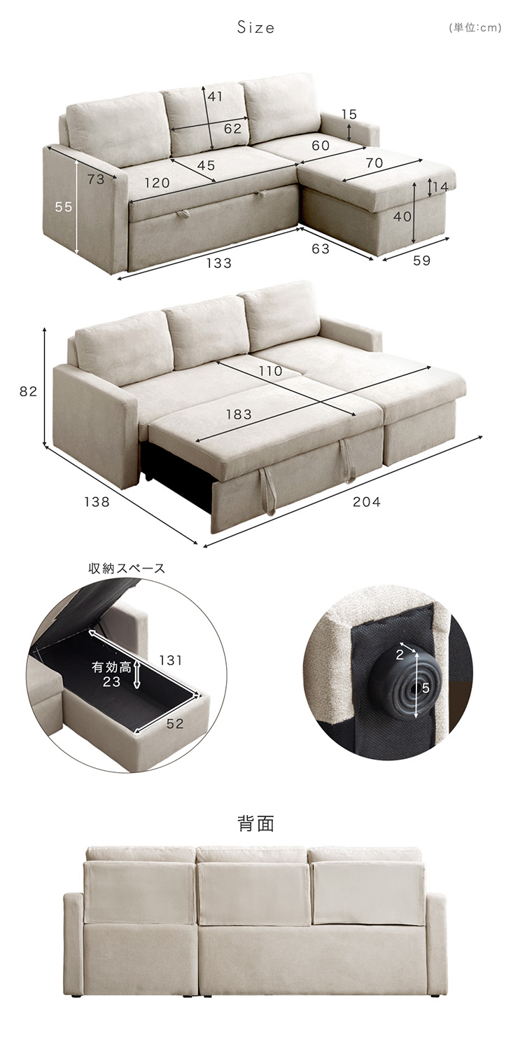 外寸:幅204×奥行138×高さ82cm