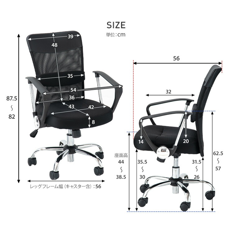 外寸:幅56×奥行56×高さ82〜87.5cm