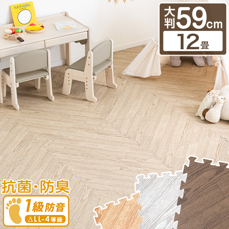 ジョイントマット 大判 木目調 12畳 64枚 厚手 フロアマット おしゃれ 防音 サイドパーツ付き プレイマット 赤ちゃん 子供 保育園 子供部屋