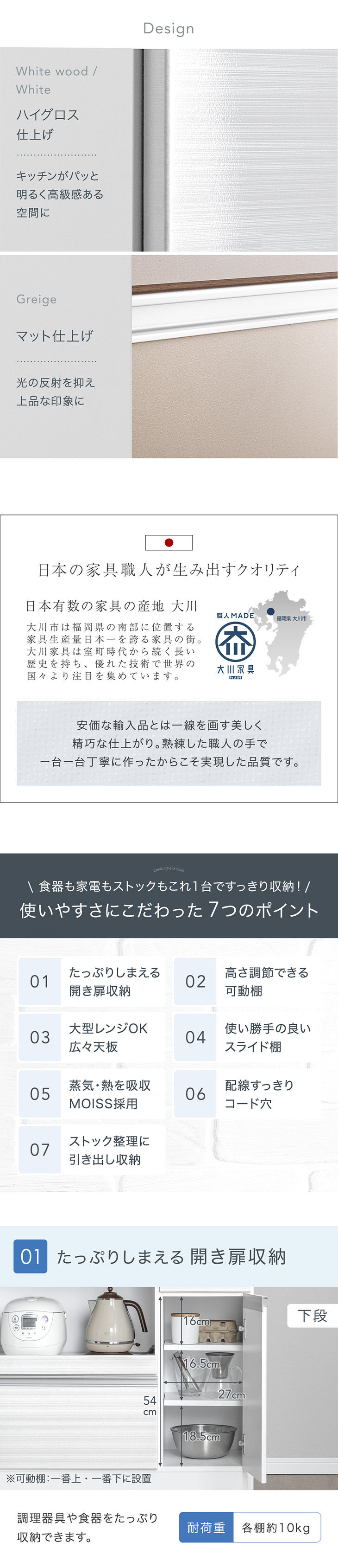前板:ホワイトウッド・ホワイト…ハイグロスシート(PVC)