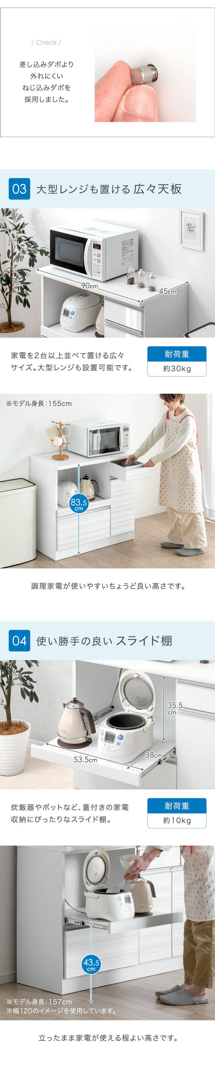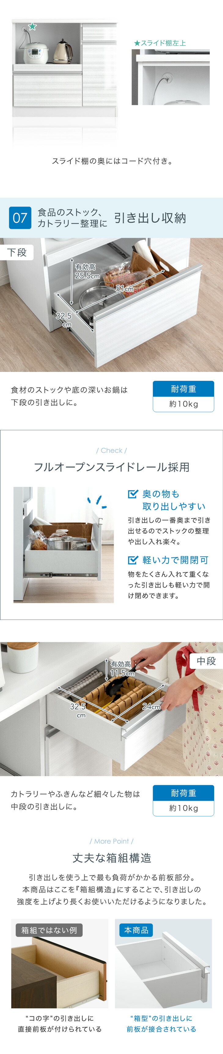 引き出し収納:中段…約10kg、下段…約10kg