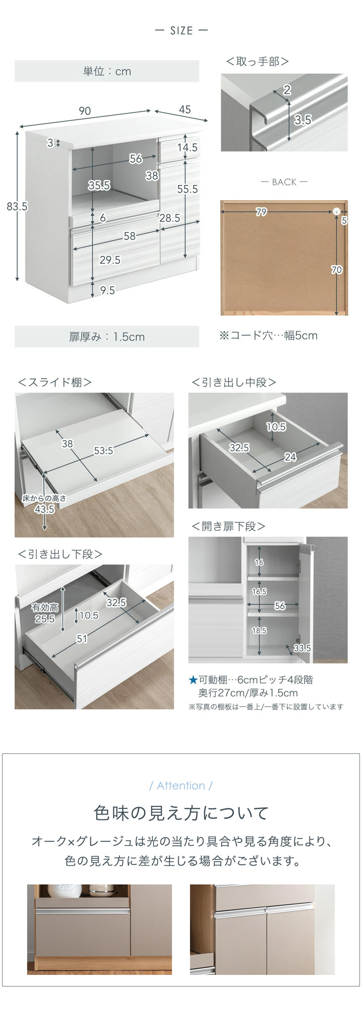 外寸:幅90x奥行45x高さ83.5cm